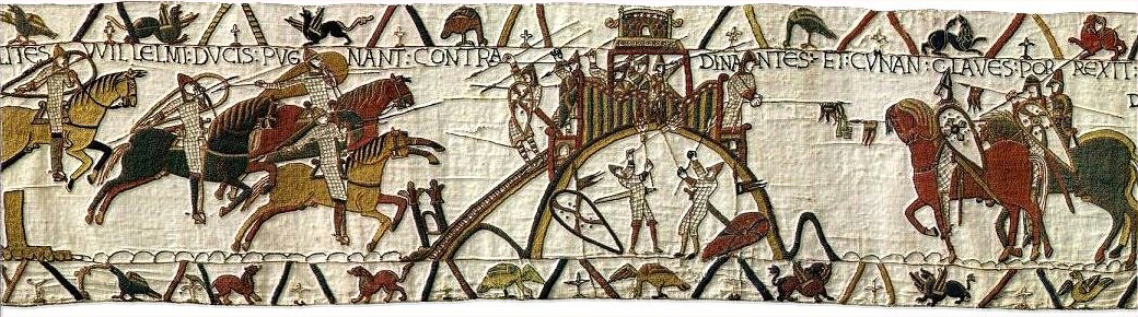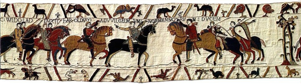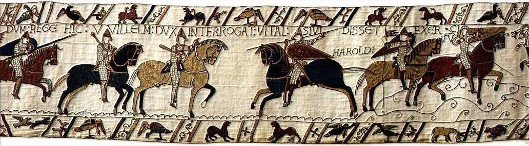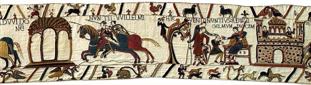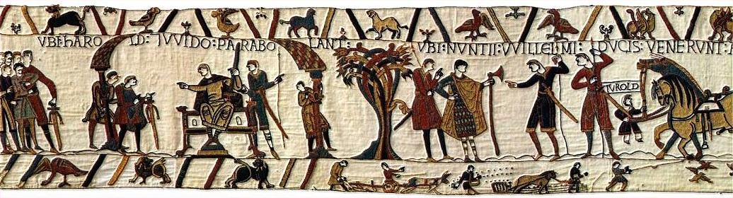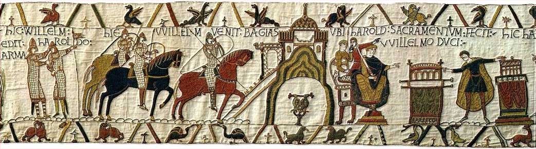 HIC WILLELM DEDIT ARMA HAROLDO. HIC WILLELM VENI BAGIAS.UBI HAROLD SACRAMENTUM FECIT WILLELMO DUCI. |