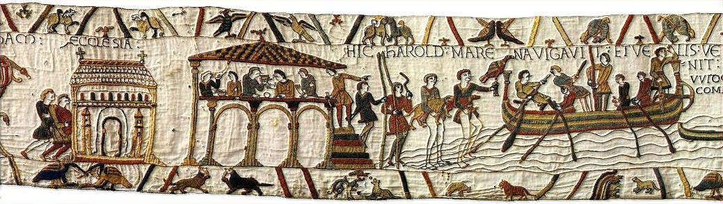 ECCLESIA. HIC HAROLD MARE NAVIGAVIT ET VELIS VENTO PLENIS VENIT IN TERRAM WIDONIS COMITIS. |