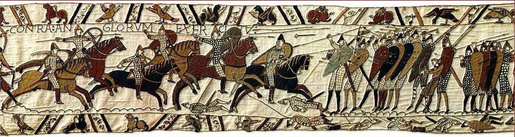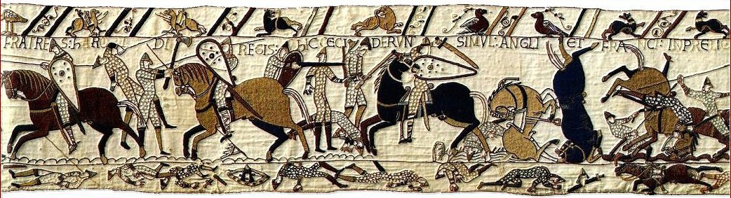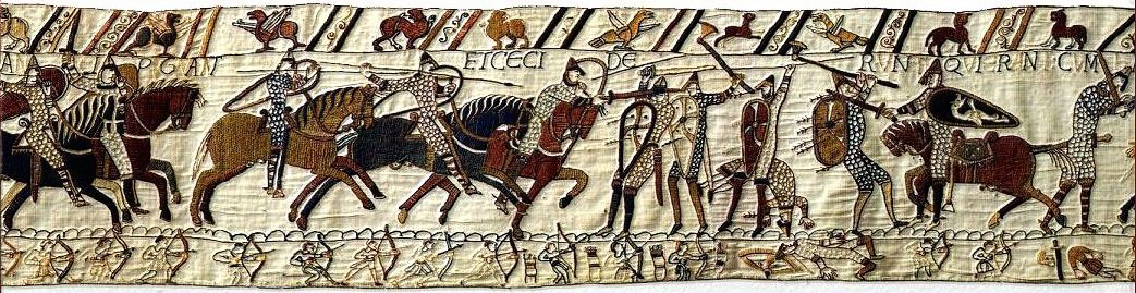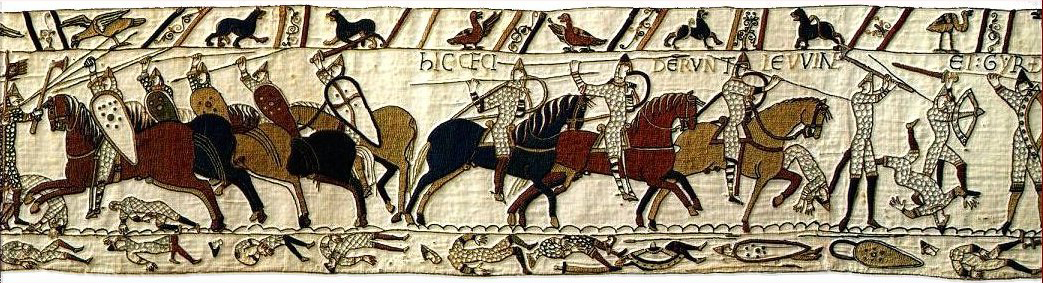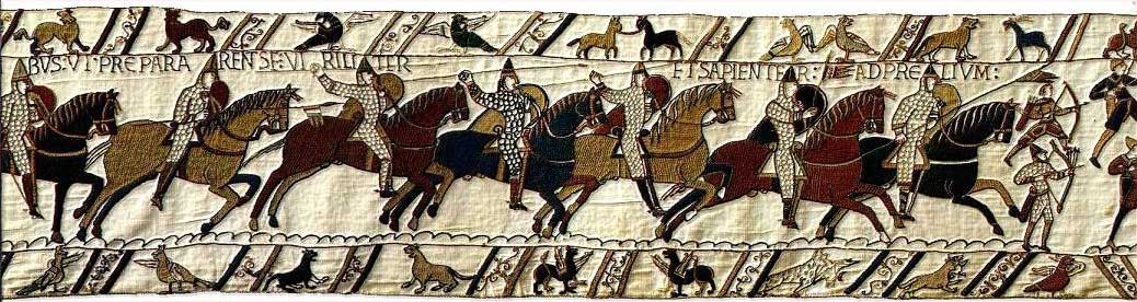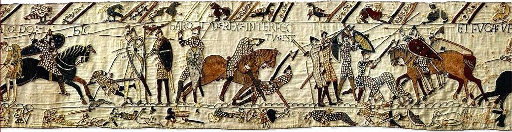 The Bayeux Tapestry is a medieval embroidery depicting the Norman Conquest of England in 1066, remarkable as a work of art and important as a source for 11th-century history.