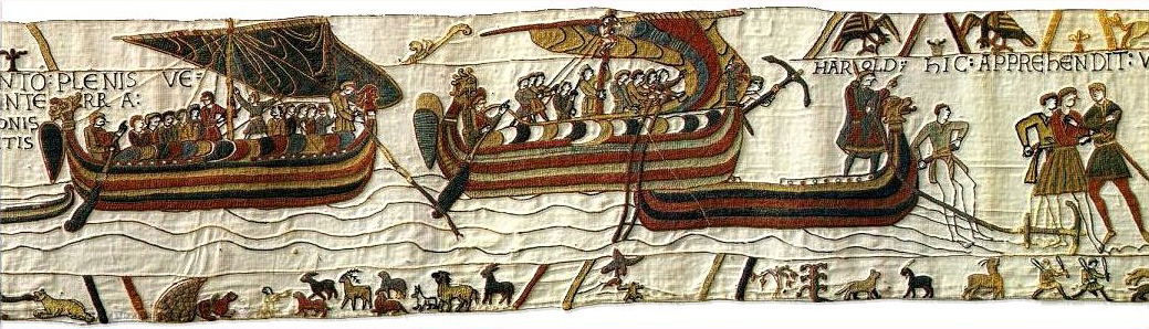 HAROLD.HIC NAVIS VENIT IN TERRAM WILLELMI DUKIS. HIC WILLEM DUX IUSSIT NAVES EDIFICARE. |
